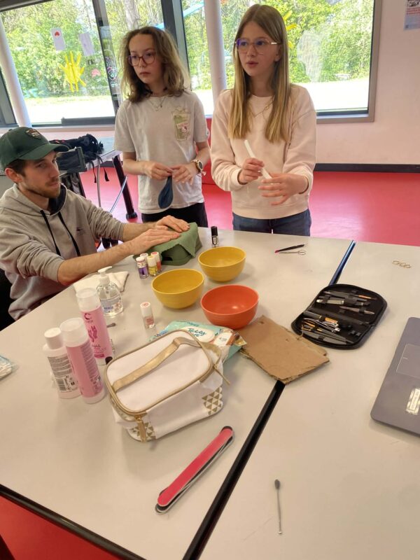 Après un atelier consacré à la décoration du PAJ, place à un moment détente avec l’atelier bien-être et beauté des mains animé par Cédric et Mario 💅